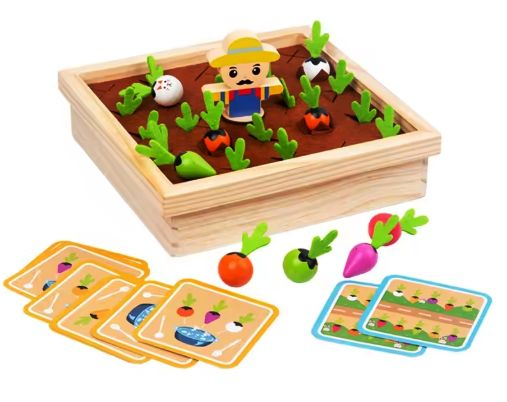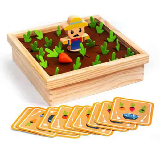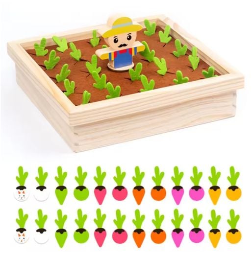 Descoperă un joc educativ captivant pentru cei mici: Jocul din lemn cu morcovi pentru dezvoltarea memoriei și a capacității de asociere. Conceput sub formă de grădină, cu o bază solidă din lemn și morcovi în culori și forme diferite, jocul îi provoacă pe copii să observe, să rețină și să potrivească elementele corect.