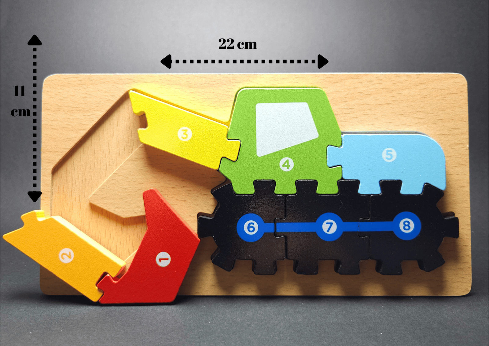 Cu dimensiunea practică de 22 × 11 cm, puzzle-urile sunt potrivite pentru grădiniță, acasă sau activități educative zilnice. Modelele atractive — urs, dinozaur 1, dinozaur 2 și excavator — transformă învățarea într-o joacă distractivă.