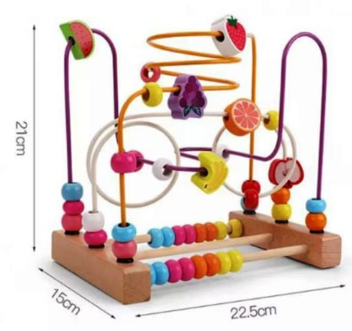 Spirală motrică din lemn pentru copii – 3 sârme, abac și fructe colorate